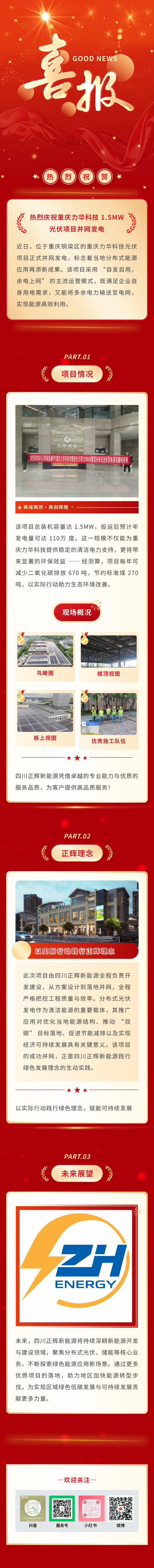 1.5MW光伏項目在重慶力華科技并網(wǎng)發(fā)電,正輝再添綠色新動能
